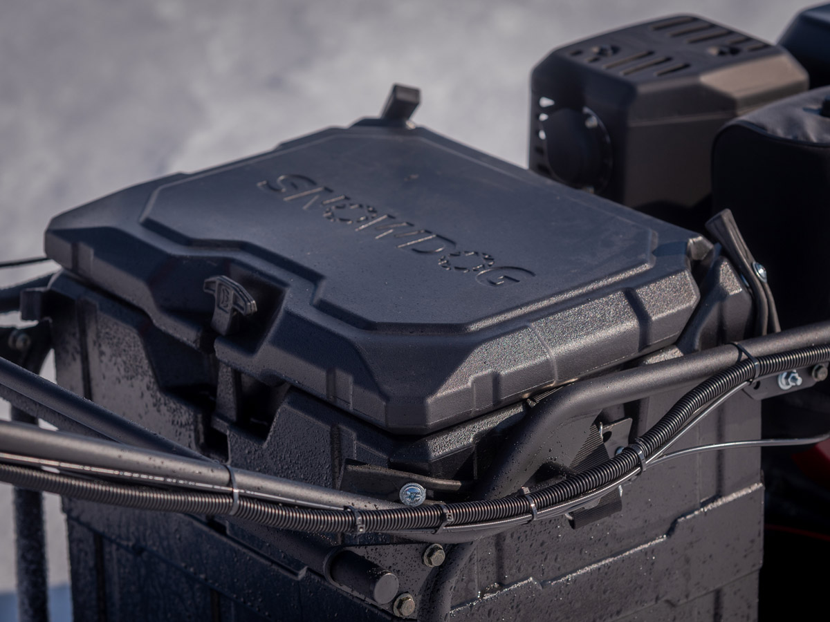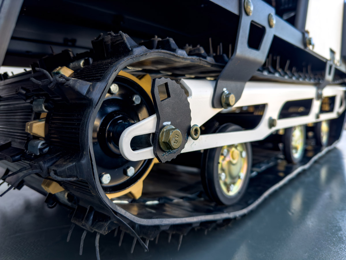 Long Track — наш самый длинный буксировщик, как можно понять из названия. Его гусеница — на полметра длиннее, чем у базовых моделей, что улучшает проходимость в глубоком снегу. При этом, Long Track — особо устойчивый, т.к. 18-сильный двигатель Zongshen GB460 (с инфо-дисплеем, датчиком уровня топлива) расположен по самому центру буксировщика.